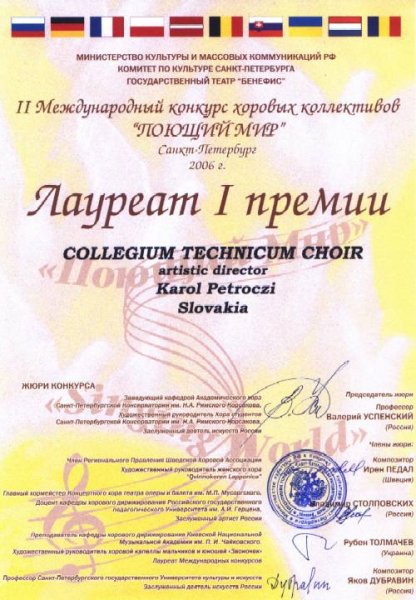 II. Medzinárodná súťaž „THE SINGING WORLD“ ("Pojuščij mir"), Sankt Petersburg, Rusko, 4. – 10. augusta 2006